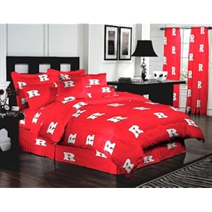 Support your team with Rutgers Scarlet Knights Bed in a Bag. 6 Piece Set Includes: 1 Comforter, 1 Pillow Sham, 3 Piece Sheet Set (1 Flat Sheet, 1 Fitted Sheet, 1 Pillow Case), 1 bed Skirt. Fabric is 200 thread count 100% cotton sateen.